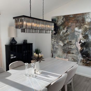 Ragna är vår moderna kristalljuskrona, som har en särpräglad järnram i gyllene och mörkgrått uttryck. Den speciella nivåfördelningen av de klara kristallerna ger Ragna ett nordisk-inspirerat uttryck. Ragna växlar uttryck beroende på om lampan är tänd eller släckt. Ragna är 80 cm i diameter och har en höjd på 34 cm. Vikten är 19,9 kg. Storleken på våra kristaller är anpassade till varje enskild modell så att ljuskronan får helt perfekta proportioner och ett uttryck som inte blir avlångt. Alla våra kristaller är av högsta kvalitet och har en vacker beläggning som är handgjord.