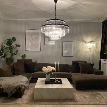 Ragna är vår moderna kristalljuskrona, som har en särpräglad järnram i gyllene och mörkgrått uttryck. Den speciella nivåfördelningen av de klara kristallerna ger Ragna ett nordisk-inspirerat uttryck. Ragna växlar uttryck beroende på om lampan är tänd eller släckt. Ragna är 80 cm i diameter och har en höjd på 34 cm. Vikten är 19,9 kg. Storleken på våra kristaller är anpassade till varje enskild modell så att ljuskronan får helt perfekta proportioner och ett uttryck som inte blir avlångt. Alla våra kristaller är av högsta kvalitet och har en vacker beläggning som är handgjord.